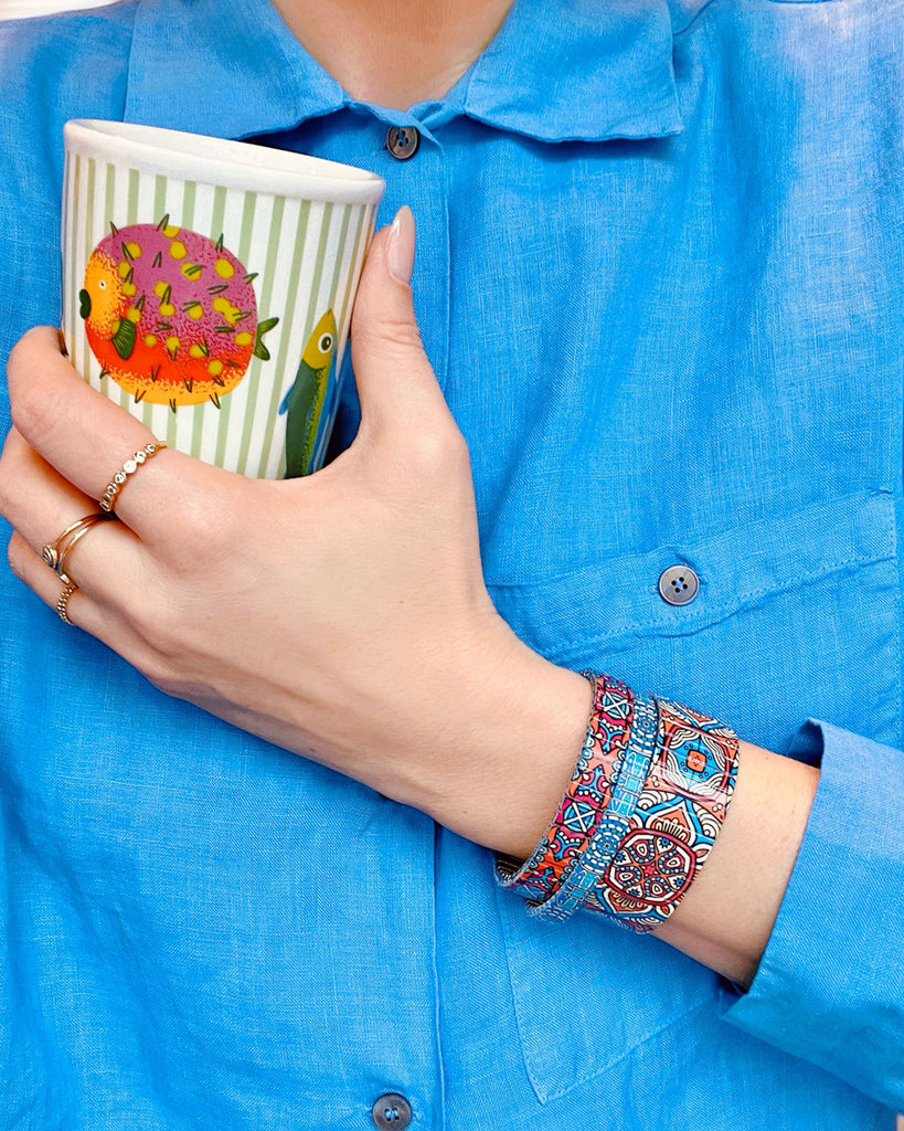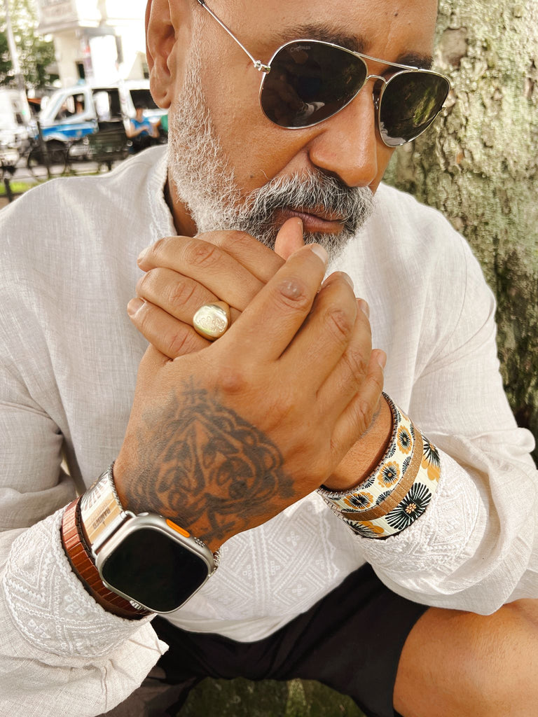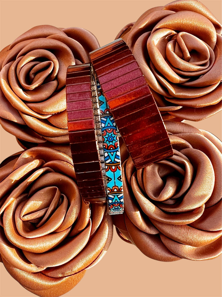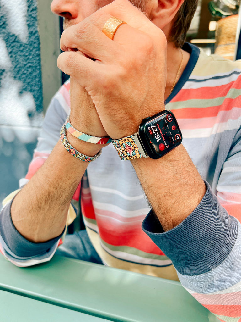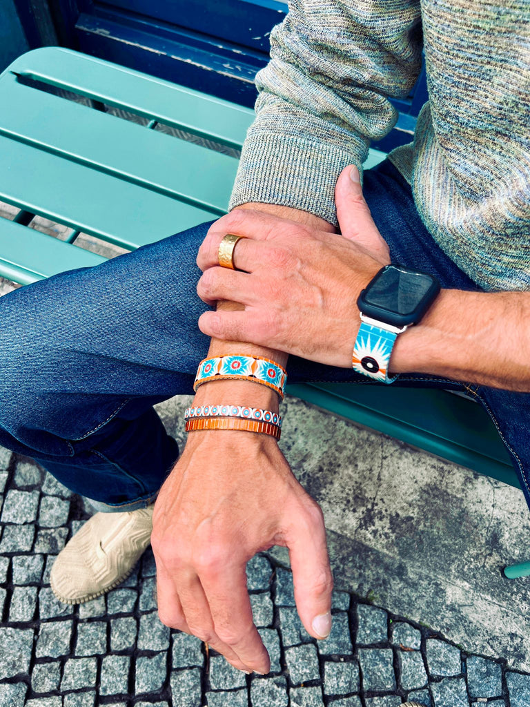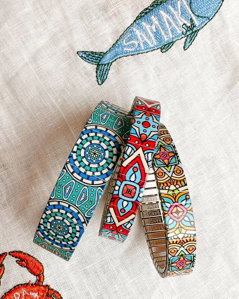 Each bracelet in this series feels like a portal: part Art Deco dreamscape, part cosmic map. Celestial motifs, mystical sigils, and bold geometric patterns come together to create a visual language that’s both timeless and otherworldly.