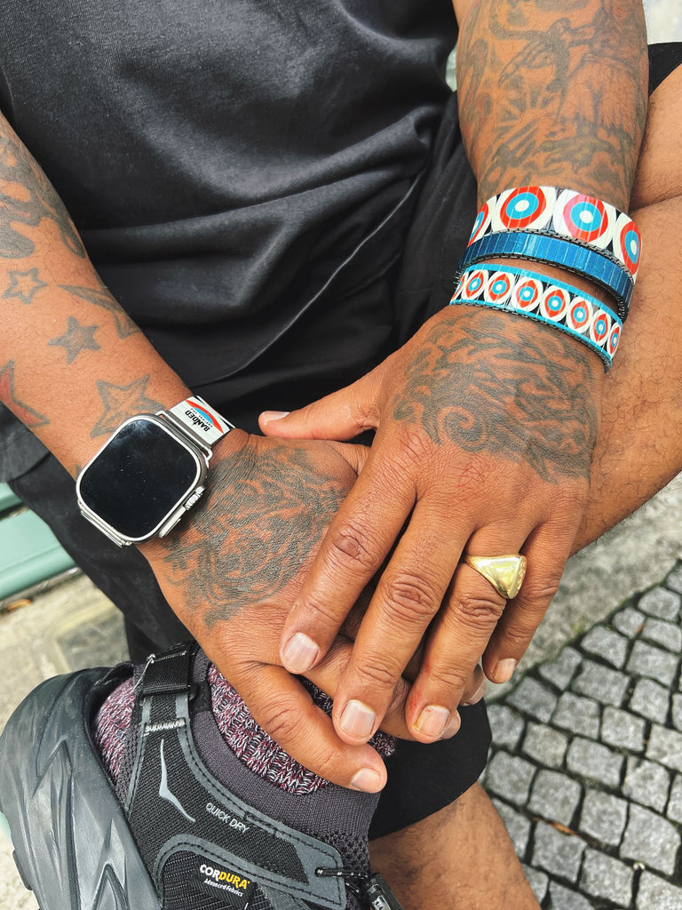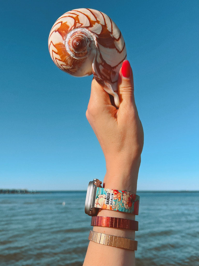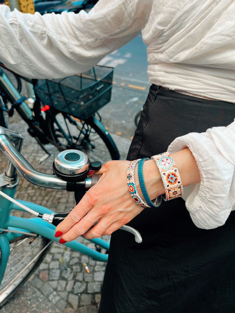 Banded Berlin Armbänder werden von uns in Handarbeit in Berlin hergestellt - als Grundmaterial nutzen wir das klassische Uhrenzugband aus Edelstahl - im Laufe unseres umweltfreundlichen Produktionsprozesses transformieren wir es in ein kunstvolles Schmuckstück und geben diesem Nostalgiker eine neue Bestimmung im Hier und Jetzt... Unsere "Bandeds" sind wasser und-uv-beständig und natürlich kratzfest! Mehr Infos zu den Bandeds und unserer Philosophie finden sie unter "Unsere Geschichte."