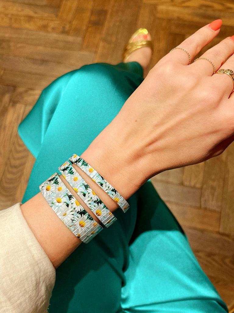 Discover the simple charm and youthful spirit of our Daisy Flower Bracelet, a piece that celebrates the timeless beauty of daisies. This bracelet brings a touch of spring's freshness to your wardrobe, symbolising new beginnings and the simple joys of life.