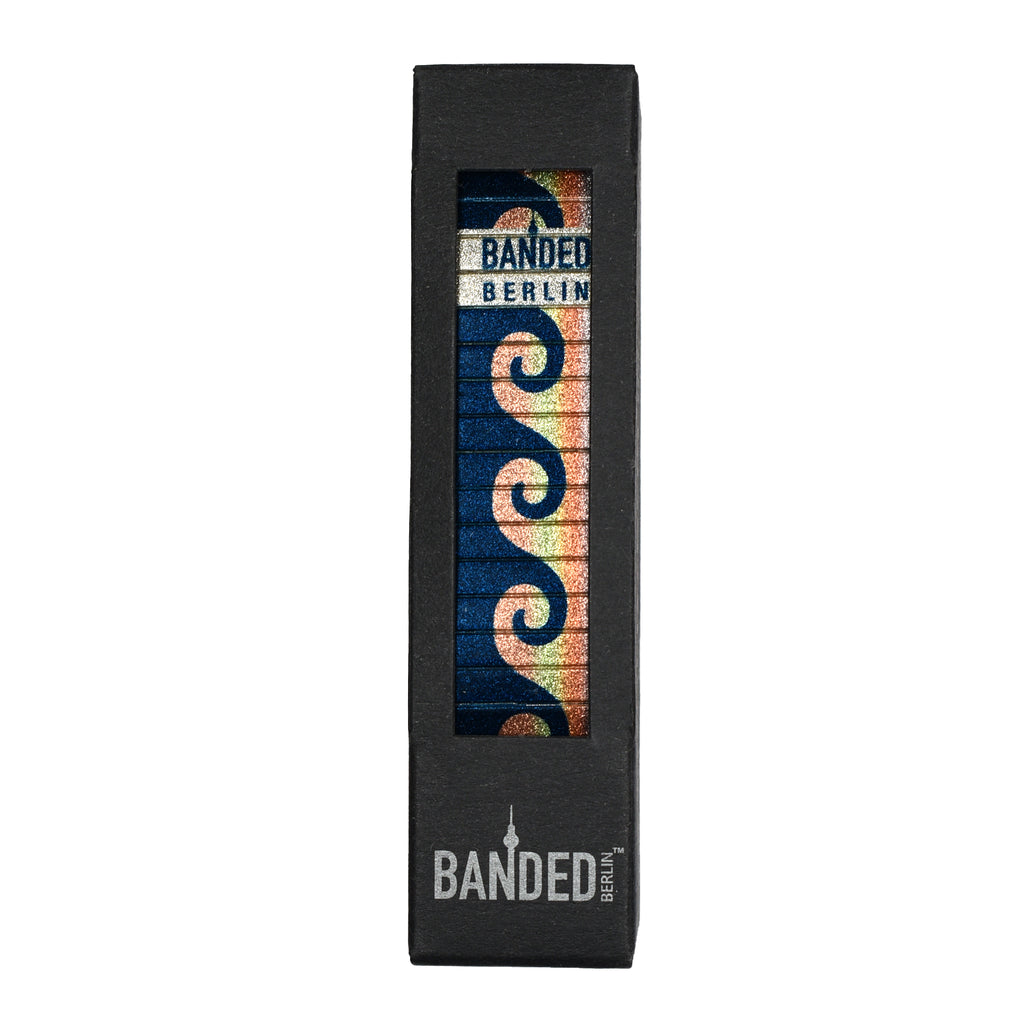 Eine zeitlose Erinnerung an die Schönheit des Ozeans. Unsere - Way of the Wave - Kollektion bringt frischen Wind für alle unsere landgebundenen Banded-Fans da draußen, für diejenigen, die mit Körper, Seele und Geist surfen. Wasserdicht & wellenfreundlich. Mit dieser Kollektion bringen wir das weitläufige Blau zu dem, was Sonnenuntergänge perfekt macht... denn ein Sonnenuntergang ist nicht so unvergesslich, wenn man keine Welle am Handgelenk trägt.