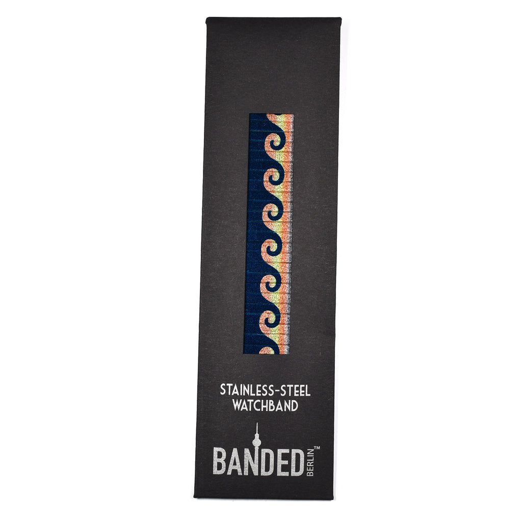 Eine zeitlose Erinnerung an die Schönheit des Ozeans. Unsere - Way of the Wave - Kollektion bringt frischen Wind für alle unsere landgebundenen Banded-Fans da draußen, für diejenigen, die mit Körper, Seele und Geist surfen. Wasserdicht & wellenfreundlich. Mit dieser Kollektion bringen wir das weitläufige Blau zu dem, was Sonnenuntergänge perfekt macht... denn ein Sonnenuntergang ist nicht so unvergesslich, wenn man keine Welle am Handgelenk trägt.