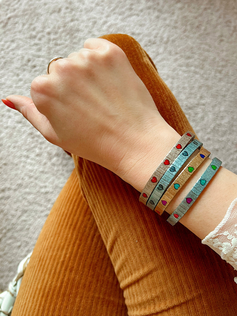 Hier findest Du alle Designs in unserer Metallic-Basisausführung. Wir haben diese spezielle Veredelung entwickelt, um unsere Armbänder so richtig zum Leuchten zu bringen. So habt ihr immer einen strahlenden Auftritt.