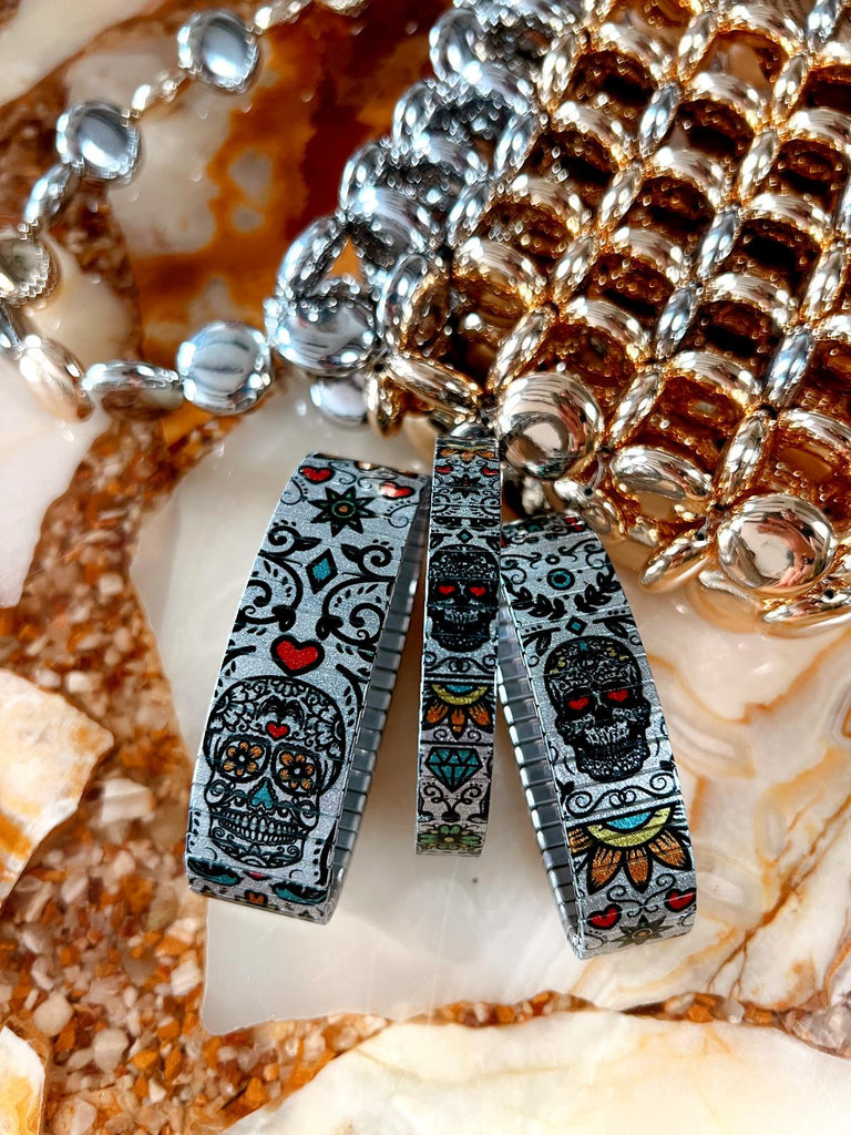 Embrace the essence of Día de los Muertos with our Day of the Dead-themed bracelets, a blend of tradition and contemporary style that speaks volumes about the beauty of life and the power of memories.