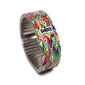 A cornucopia of running color, this piece brings us back to the good ol 'days of being an art school dropout. Pushing paint resonates with anyone whosever picked up a brush. It's time to wear that pallet around your wrist again.