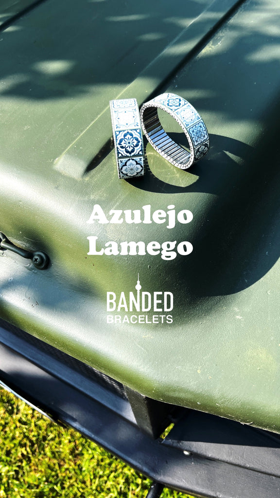 Unsere lebendigen "AZULEJO BANDEDS" sind inspiriert von den kunstvollen portugiesischen Steinfliesen, welche in wunderbarer Handarbeit gefertigt, hunderte Häuser und Böden schmücken. Wir empfehlen in der Hektik des Alltags ab und zu einen Blick beim Tragen darauf zu werfen und für einen Moment inne zu halten - beruhigt ungemein!