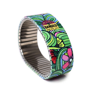 "Die Siebziger haben angerufen und wollen Ihre Armbänder zurück" - knallige Grüntöne und pinkfarbene Retroblumen auf psychodelischem Grund - nostalgisch wie Omas Küchenschürze und eine Erinnerung an die Familienessen unserer Kindheit.