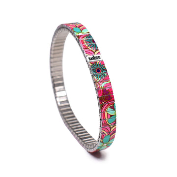 "Die Siebziger haben angerufen und wollen Ihre Armbänder zurück" - knalliges Pink und türkisfarbene Retroblumen auf psychodelischem Grund - für alle die wissen, das früher vielleicht nicht alles besser, aber mit Sicherheit ganz schön bunt war!