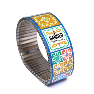 Unsere lebendigen "AZULEJO BANDEDS" sind inspiriert von den kunstvollen portugiesischen Steinfliesen, welche in wunderbarer Handarbeit gefertigt, hunderte Häuser und Böden schmücken. Wir empfehlen in der Hektik des Alltags ab und zu einen Blick beim Tragen darauf zu werfen und für einen Moment inne zu halten - beruhigt ungemein!